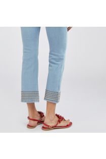 Los pantalones modelo Virna tienen un corte cropped flare y están fabricados en suave tela superstrech