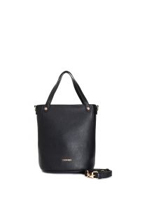 Bolso tipo bombonera de refinado material granate detalles de tachuelas con logo y bandolera ajustable y extraíble para un estilo práctico y elegante.