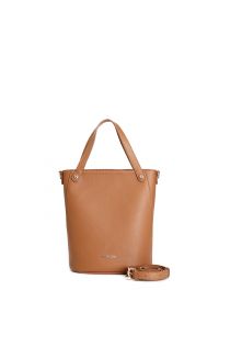 Bolso tipo bombonera de refinado material granate detalles de tachuelas con logo y bandolera ajustable y extraíble para un estilo práctico y elegante.