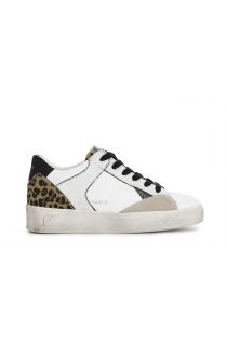 deportivas de mujer en piel y ante con inserciones de efecto metalizado. spotted white