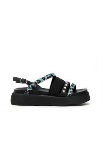 Deportivas en tejido y ante con logo lateral y lengüeta fluorescente