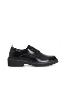 Derby de mujer en piel sintética desgastada con elástico y complemento con inscripción cafènoir. la plantilla es de piel.