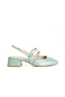 destalonado de charol con dos hebillas con cordones en la parte trasera sage