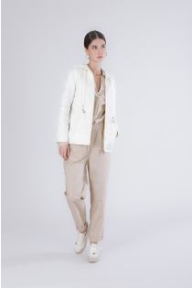 Chaqueta de plumón de primavera para mujer de corte ajustado y femenino con un elegante acolchado de rombos. cuenta con cierre de cremallera frontal cintura con cordón ajustable mangas largas y capucha fija. ideal para entretiempo. la modelo mide 175 cm y lleva una talla s. corte: regular.