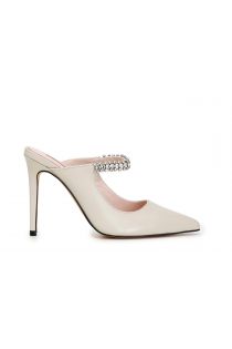 escote abierto en la espalda con tacón alto y banda joya