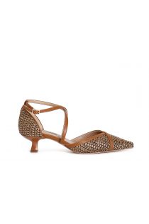 Escote efecto rafia con cruce en el empeine y parche en la espalda. forma delgada. plantilla de piel. tacón de carrete de 5 cm. calzado que combina elegancia y modernidad. ideal para añadir un toque sofisticado a cualquier outfit.