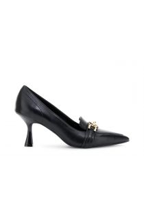 Zapatos de salón de piel con clip dorado y tacón de carrete de 7,5 cm. Elegancia y comodidad se unen gracias a la plantilla de piel. Perfectos para looks refinados y versátiles.