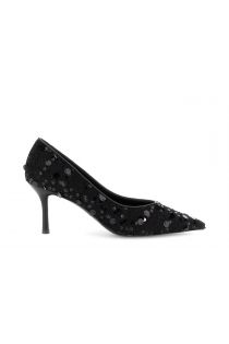 Brilla como una promesa susurrada en la noche: zapatos de salón de bouclé con lentejuelas, tacón de 7,5 mm y forma puntiaguda. Una elegancia luminosa que baila con cada paso.