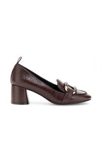 Zapatos de salón de piel sintética arrugada con clip dorado. Cómodos, punta redondeada y tacón grueso de 6 cm. Elegancia y practicidad para un look sofisticado a diario.
