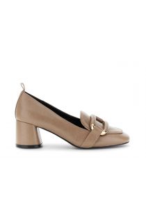 Zapatos de salón de piel sintética arrugada con clip dorado. Cómodos, punta redondeada y tacón grueso de 6 cm. Elegancia y practicidad para un look sofisticado a diario.