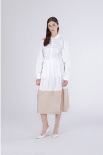 falda bicolor con pliegues white/sand