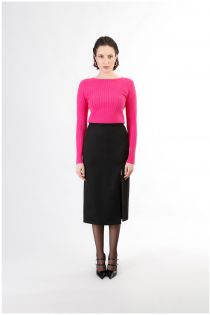 Falda midi confeccionada en tejido de poliviscosa. la falda tiene una importante abertura lateral con una cremallera decorativa oblicua.