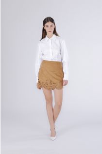 Minifalda de antelina con un diseño femenino con un elegante corte láser decorativo en el bajo. suave al tacto estiliza la figura y es ideal para looks chic y contemporáneos. la modelo mide 171 cm y lleva una talla s. corte: regular.