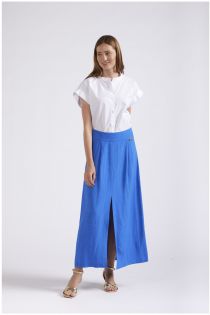 Falda larga con abertura frontal confeccionada en tejido de mezcla de lino. cierre con cremallera lateral. sencilla elegante y moderna aporta sofisticación a tu vestuario diario.