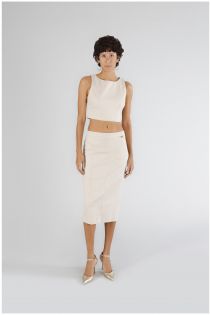 Falda tubo de largo midi confeccionada en tejido elástico. cierre con abertura y cremallera oculta en la espalda. simple elegante y moderno aporta sofisticación a tu guardarropa diario. para combinar con el top coordinado.
