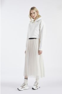 Falda plisada confeccionada en un vivo tejido georgette con delicados toques de lúrex