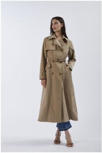 Indispensable en el armario de primavera. gabardina larga de doble botonadura con solapa trasera y delantera. de tejido tecafènoir. cinturón elástico con hebilla con logotipo para definir la cintura. manga larga.