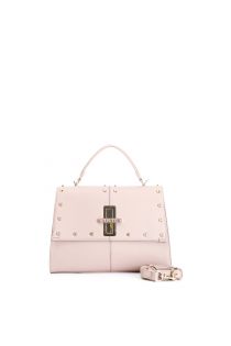 Solapa grande con tachuelas facetadas. cierre twist turn lock con logotipo cafènoir. bolso con bandolera ajustable.