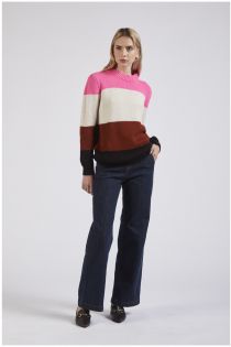 Jersey de manga larga y cuello redondo con estampado de rayas confeccionado en hilo de lana viscosa.