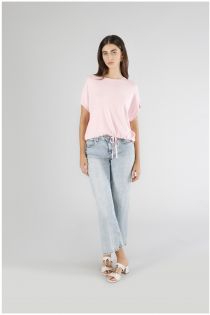 Jersey en forma de caja con cordón en el bajo confeccionado en hilo de viscosa. prenda básica perfecta combinada con unos vaqueros o una falda larga.