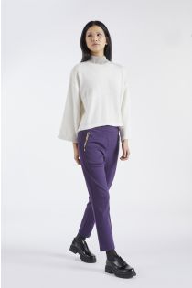 Jersey holgado, cálido y envolvente, con mangas acampanadas y cuello alto confeccionado en hilo con mezcla de angora y lúrex.