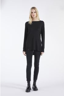 Jersey con escote barco en hilo con mezcla de cachemir, con detalles de lúrex y parte trasera más larga