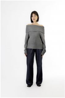 Jersey en mezcla de lana con escote barco vuelto que deja los hombros al descubierto. prenda con un toque casual y moderno. perfecto para el uso diario.