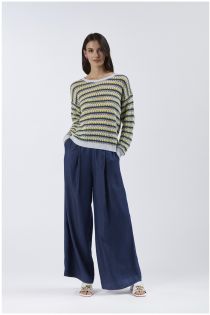 Jersey multicolor de cuello redondo y manga larga en mezcla de algodón con elaboración de croché. prenda básica perfecta para un look de los años 70. combínalo con unos vaqueros flare o una maxifalda.
