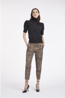 Elegante jersey de cuello alto con mangas cortas abullonadas realizado con una mezcla de hilos cálidos