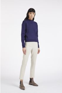 Jersey de cuello alto realizado con un hilo de mezcla de viscosa. Delicada puntada de color en contraste