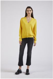 Jersey con cuello de pico y mangas largas. volantes en los hombros. vestibilidad cómodo realizada en hilo de viscosa.