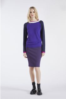 Jersey de cuello redondo, cálido y envolvente, con mezcla de colores e hilos