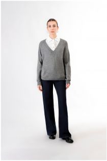 Jersey en mezcla de lana con escote en "v". prenda de gran comodidad y versatilidad. modelo passepartout para cada tipo de necesidad.