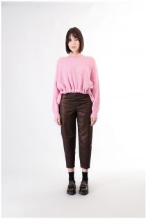 Jersey con cuello barco en hilo de mezcla de lana con elaboración moulinè. cordón frontal en el bajo que crea un juego de volúmenes. pieza perfecta que añade un toque de estilo a tu guardarropa de invierno.
