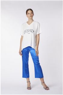 Maxi camiseta de punto de algodón 100% con llamativas letras de lentejuelas «sunset».