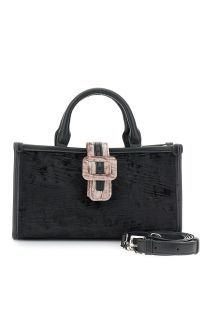 mini bolso de terciopelo con detalles de piel sintética black/mink