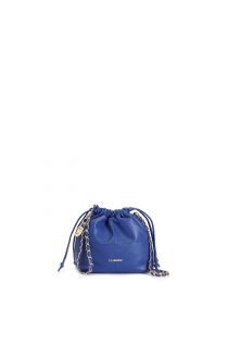 minibolso con cierre de cordón y bandolera de cadena con elegantes hilos blue