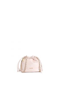 minibolso con cierre de cordón y bandolera de cadena con elegantes hilos powder
