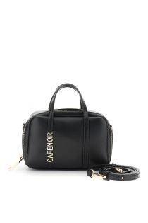 Minibolso de piel sintética lisa con letras metálicas de gran tamaño. Correa de hombro ajustable y extraíble para llevarlo en la mano o cruzado. Diseño compacto y moderno.