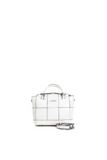 Minibolso tejido sin forro con bandas anchas cierre superior de cremallera y asas con hebilla de imitación con correa opcional para el hombro.