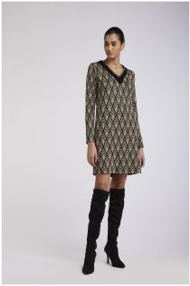 Minivestido de manga larga y escote en "v". realizado en tejido jacquard con diseño geométrico.