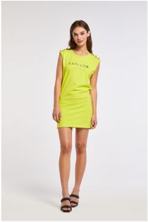 Minivestido sin mangas de algodón elástico con logotipo estampado y botones con logotipo como detalle en los hombros