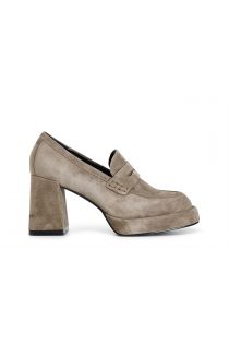 Mocasín de ante con tacón de 80 mm y plataforma de 20 mm. la plantilla es de piel. comodidad y elegancia al mismo tiempo y un carácter único adecuado para cada atuendo.