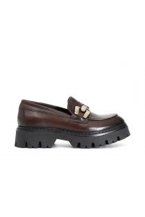Mocasín de piel para mujer adornado con un horsebit en la trabilla. la plantilla es de piel. un modelo versátil y dinámico ideal para completar muchos conjuntos.