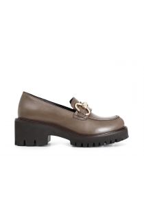 Mocasín de mujer en piel con horsebit dorado. el tacón mide 55 mm de alto. cómoda plantilla de piel. suela dentada.