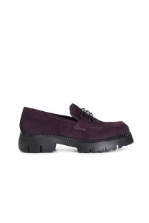 Mocasín de mujer en ante con bocado. el forro y la plantilla son de piel. meseta de 25 mm de altura. tacón de 40 mm.