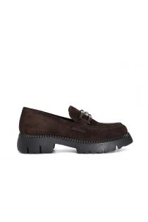 mocasín de mujer en ante con bocado dark brown