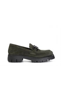 Mocasín de mujer en ante con bocado. el forro y la plantilla son de piel. meseta de 25 mm de altura. tacón de 40 mm.
