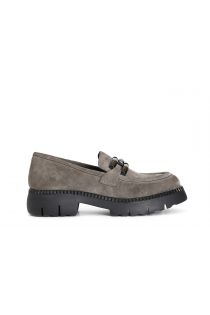 Mocasín de mujer en ante con bocado. el forro y la plantilla son de piel. meseta de 25 mm de altura. tacón de 40 mm.