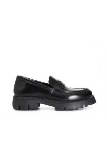 Mocasín de piel para mujer con accesorio trabilla y moneda. el forro y la plantilla son de piel. meseta de 25 mm de altura. tacón de 40 mm.
